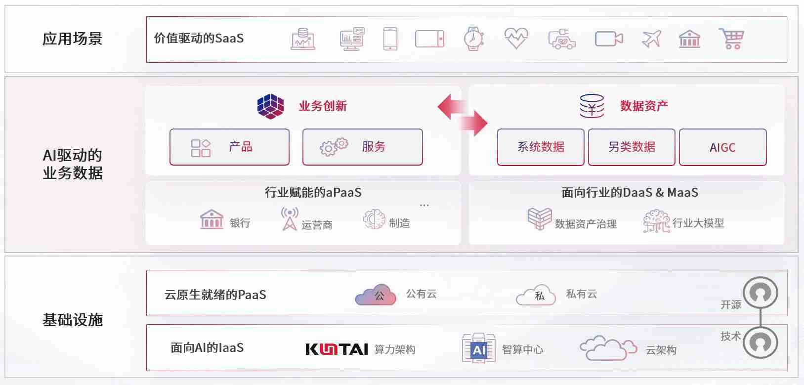 数字时代,,,,围绕企业数字化转型的关键要素,,z6com尊龙数码开创性的提出数云融合战略和技术体系框架,,着力在云原生、、数字原生、、AI原生和信创产业上架构产品和服务能力,,,为处在不同数字化转型阶段的快消零售、、、、汽车、、、金融、、医疗、、、政企、、教育、、、、运营商等行业客户提供泛在的敏捷IT能力和融合的数据驱动能力,,,,构建跨界融合创新的数字业务场景和新业务模式,,,,助力企业级客户建立面向未来的核心能力和竞争优势,,,,全面推动社会的数字化、、、、智能化转型升级。。