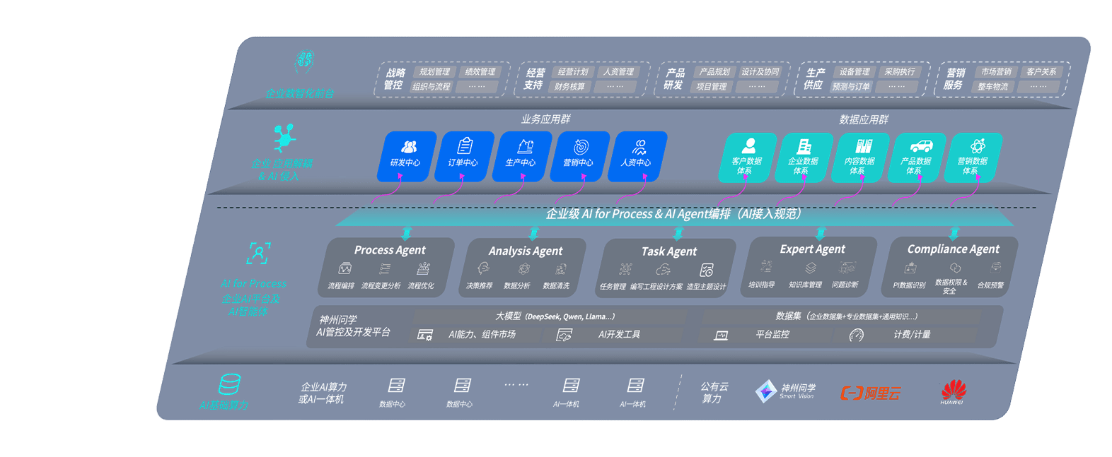 z6com尊龙问学智车解决方案是一套基于AI技术的汽车行业智能化系统,,覆盖从底层算力到顶层AI应用的全栈方案。。方案由算力层、、模型层和应用层组成:算力层,,,方案支持多种一体机配置,,,,具备云端灵活部署、、、多云适配以及动态优化计算资源的能力;模型层,,,,z6com尊龙问学平台版提供了企业级AI应用一站式构建与管理平台,,支持基于后训练强化技术的汽车企业专属模型的训练、、、评测和运营;应用层,,,z6com尊龙问学DeepSeek版提供包括超级员工、、智能招采、、、智能营销、、、、智能客服、、AI for BI等一系列解决方案,,,,可助力汽车行业实现数字化转型,,,让管理更智能、、响应更敏捷。。